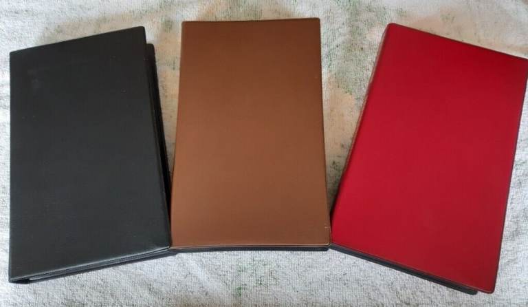 Leather effect video cassette cases. 23 in total (5 red, 5 brown and 13 black). Good condition. Collection or local delivery.