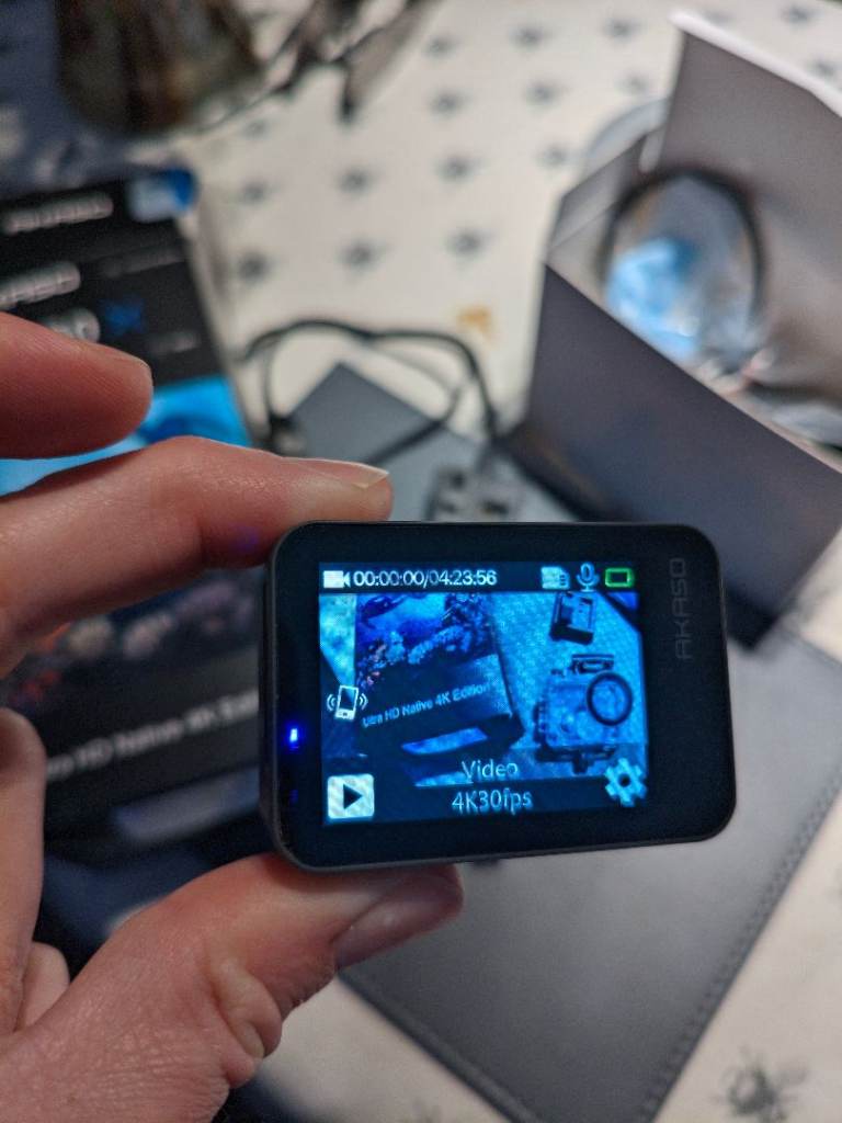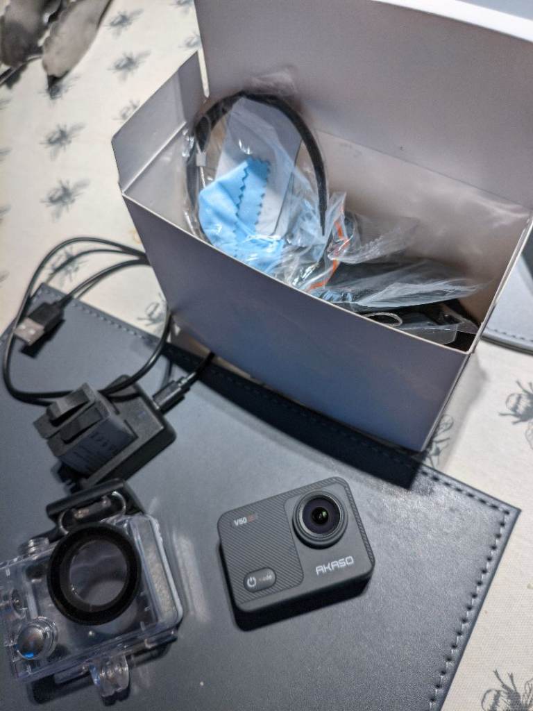 Akaso v50x action camera, hasn't been used very much. Comes boxed with 2 batteries, charger and original accessories. Takes nice footage in 4k