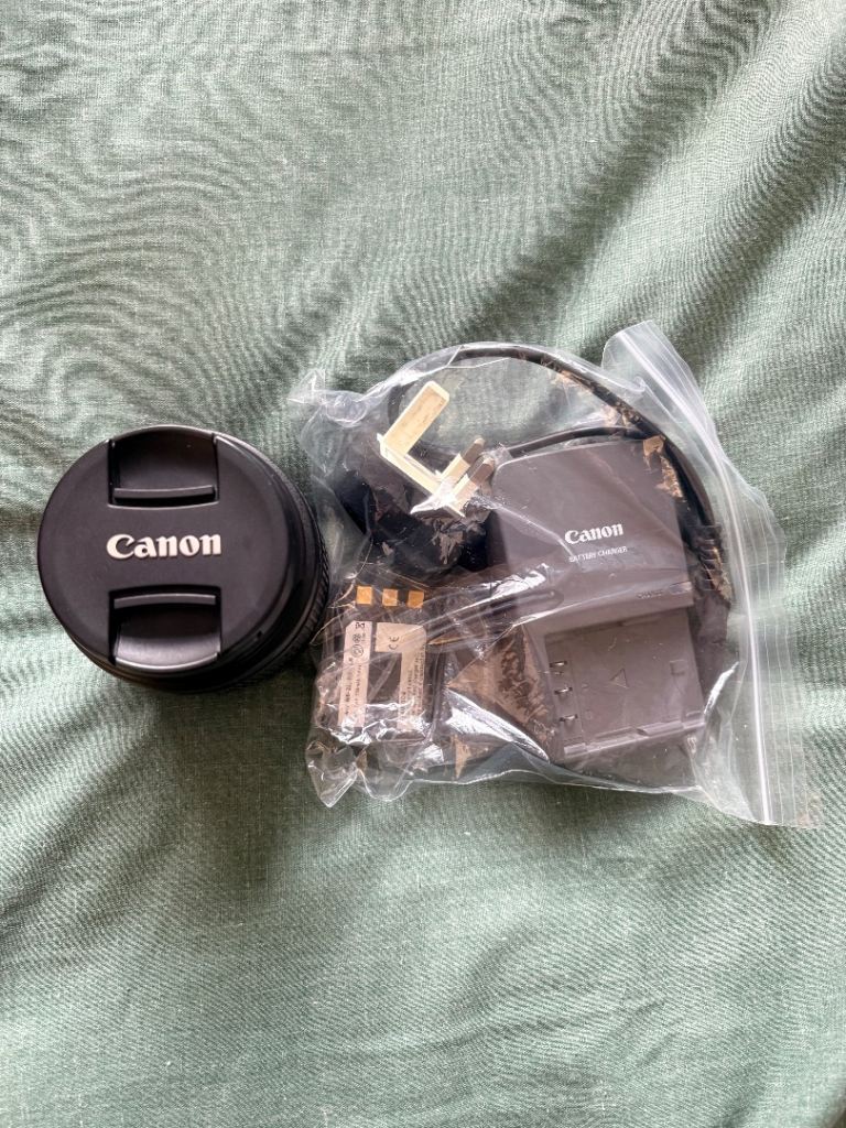 Camara lens and charger ,plus 2 battries they were off a canon eos 400d digital camara the battries seemed to work. Last time I tried them. Bargain no offers Can’t post..