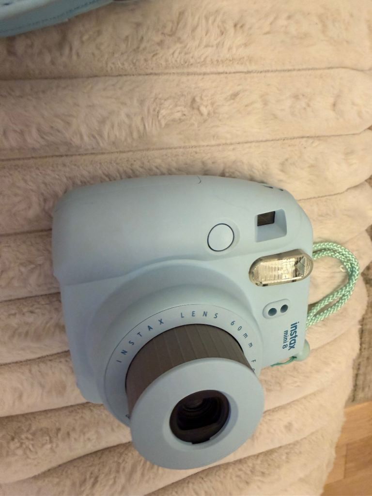 Instax mini 8 blue Polaroid camera. Used in good condition. Comes with case