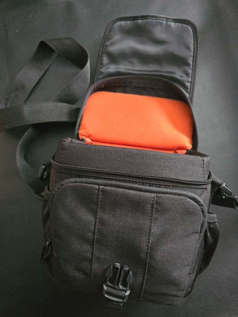 Lowenpro Camera/Camcorder Case, moveable divisions inside, additional storage areas, long strap. Excellent condition, used once
