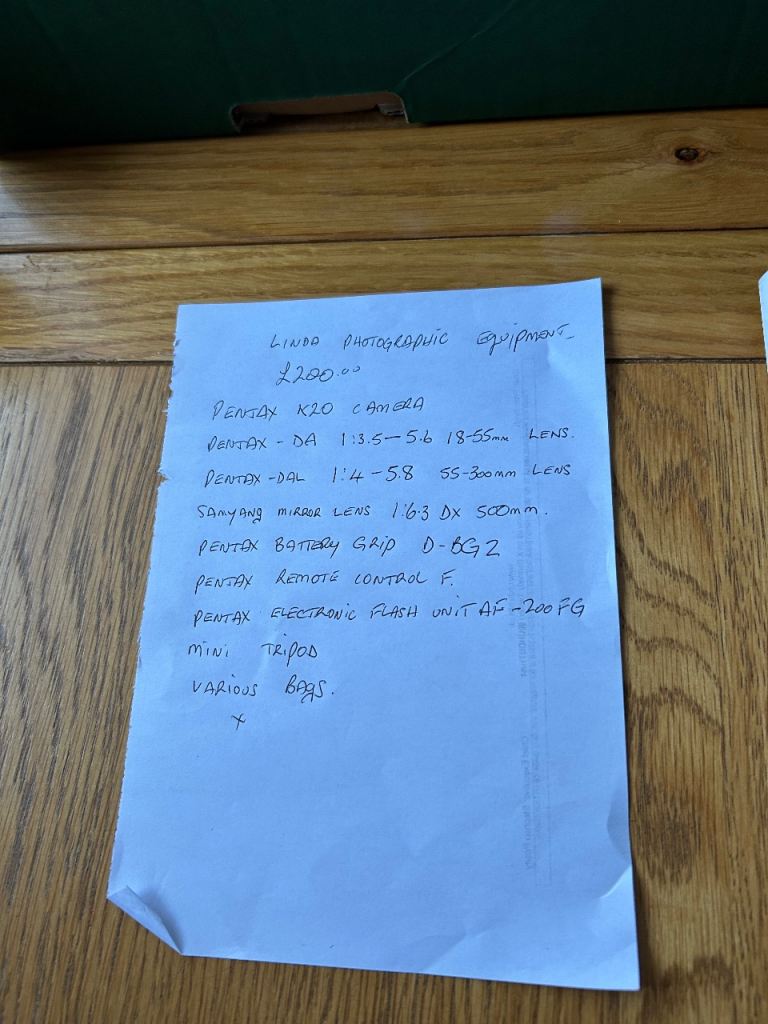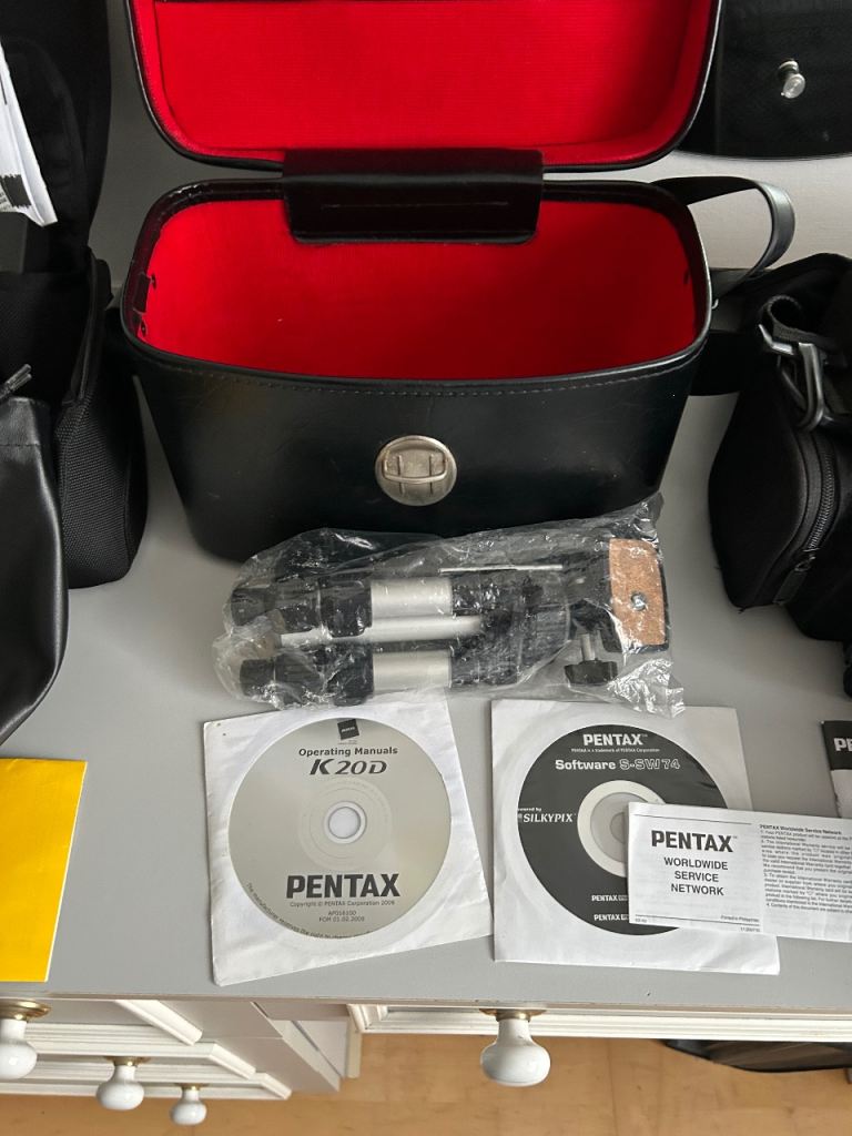Pentax K20 camera and loads of accessories plus operating manual and the list of accessories is on one of the photos..Assured by the owner it works perfectly well.Job lot for £200