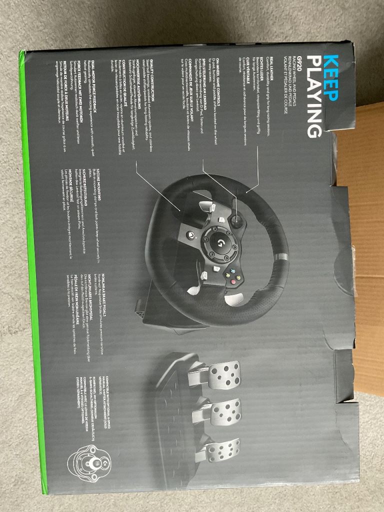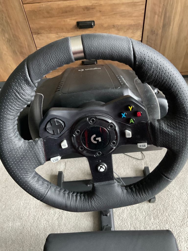Logitech G920 steering wheel and pedals. Both seat, steering wheel and pedals used a couple of times.