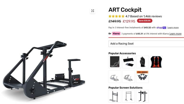 GTOmega ART full Racing cockpit with RS12 Simulator seat and GTOmega Monitor stand RRP £470