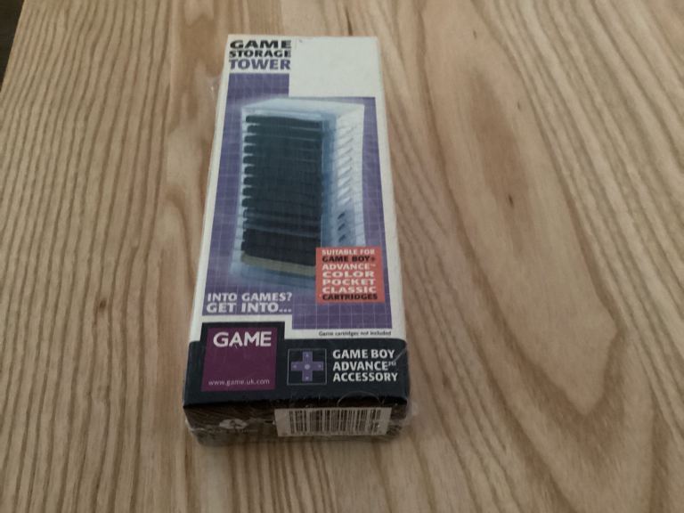 GAMEBOY ADVANCE (VINTAGE ) In Original Box + 4 Boxed Games with Instructions….1 Unboxed Game+ Game Storage Tower ( never used or opened still has cello on ).Games are :