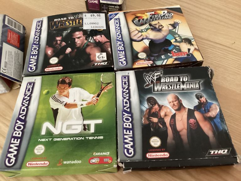 GAME BOY ADVANCE (VINTAGE ) In original Box + 4 Original Boxed Games with Manuals + 1 Unboxed Game