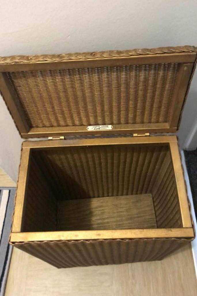 This is a very handy Lloyd Loom Lusty rectangular linen or storage basket in original gold paint