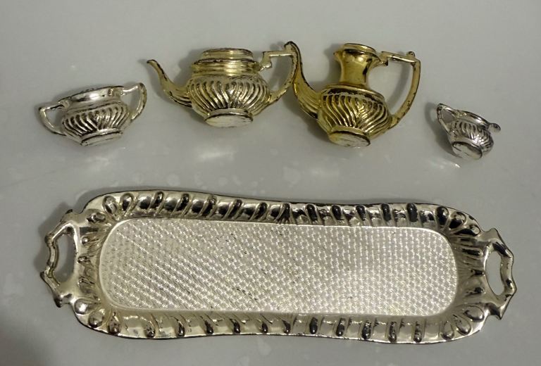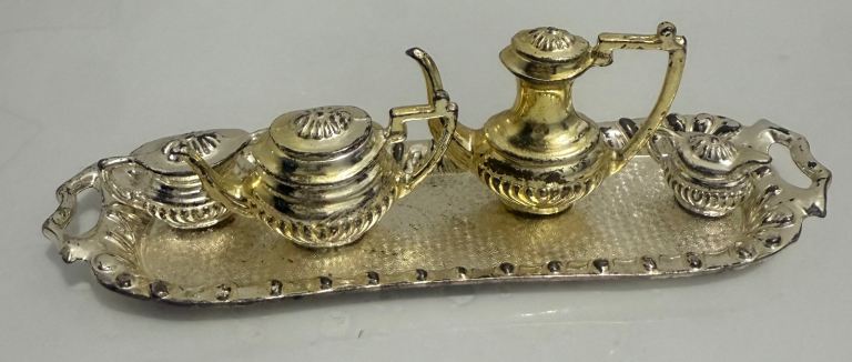 Vintage Miniature Ornate 5 Piece Brass Tea & Coffee Set