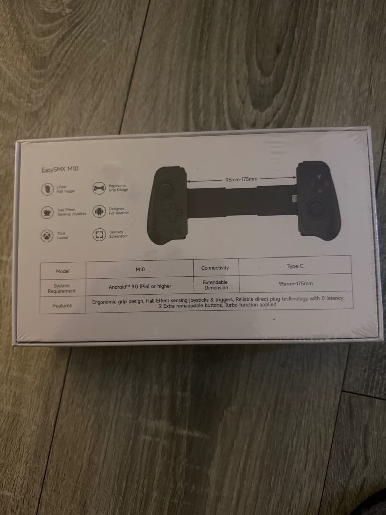 Designed for Android phones. Fits phone 95mm to 175mm wide. USB-C connection. Button layout similar to Xbox controller.