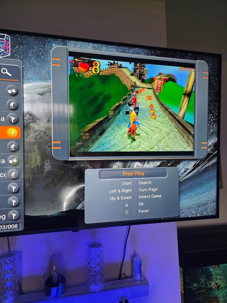 Hi selling my joy pad 1 or 2 player thousands of games on it built in lights up blue when turned on no internet needed like new hardly been used comes with usb cable and hmdi cable boxed got it from classic arcade