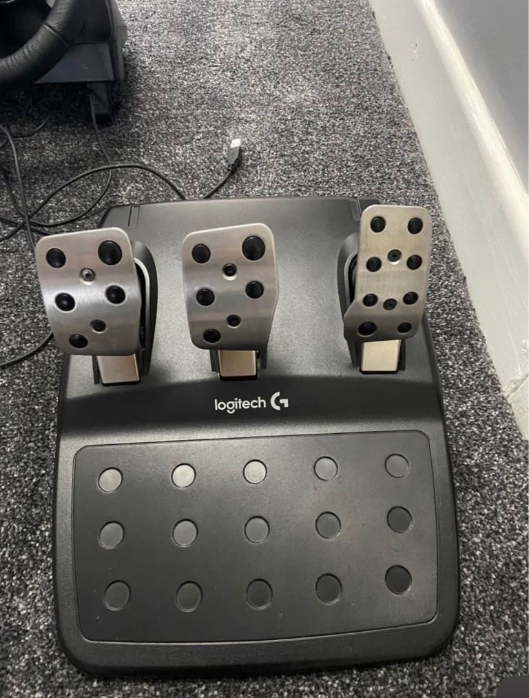 Logitech G29 driving force racing wheel and pedal set, perfect for a realistic sim racing experience.