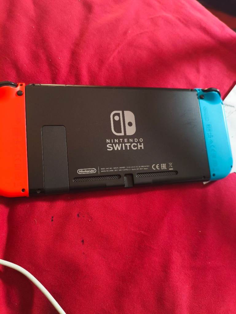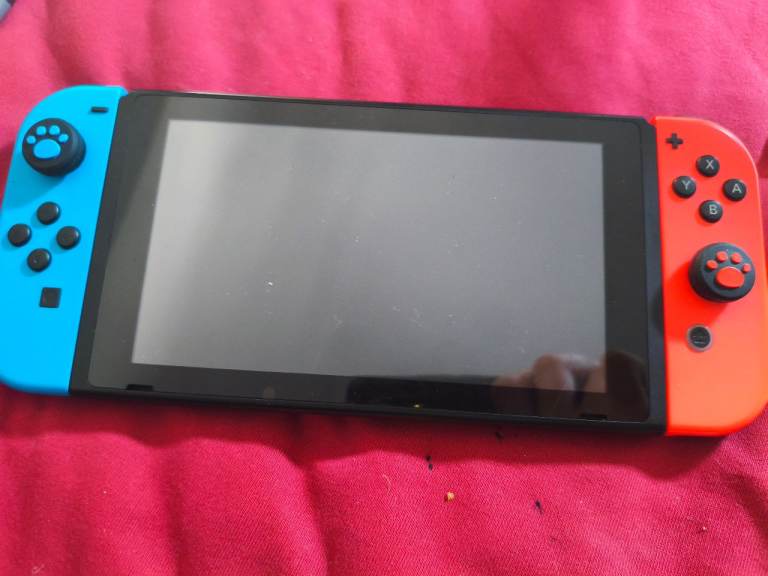 It includes detachable Joy-Con controllers with analog sticks and buttons.