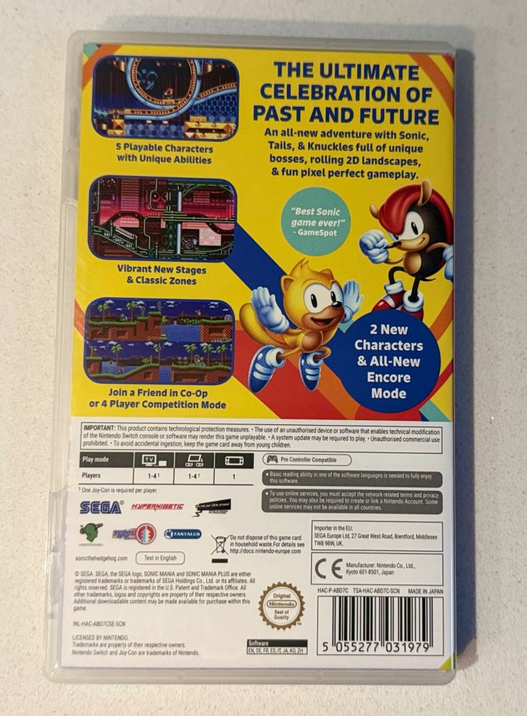 • Sonic Mania includes original booklet/manual