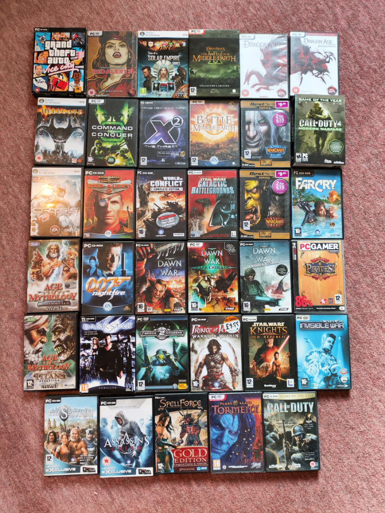 You are looking at a collection of thirty five retro pc games and expansions. Either for PC CD Rom or PC DVD. This includes three games that were new when I received then and have never been opened/played. Selling as I need to reduce the amount of stuff that I own and in most cases, I know own updated/improved Steam versions.