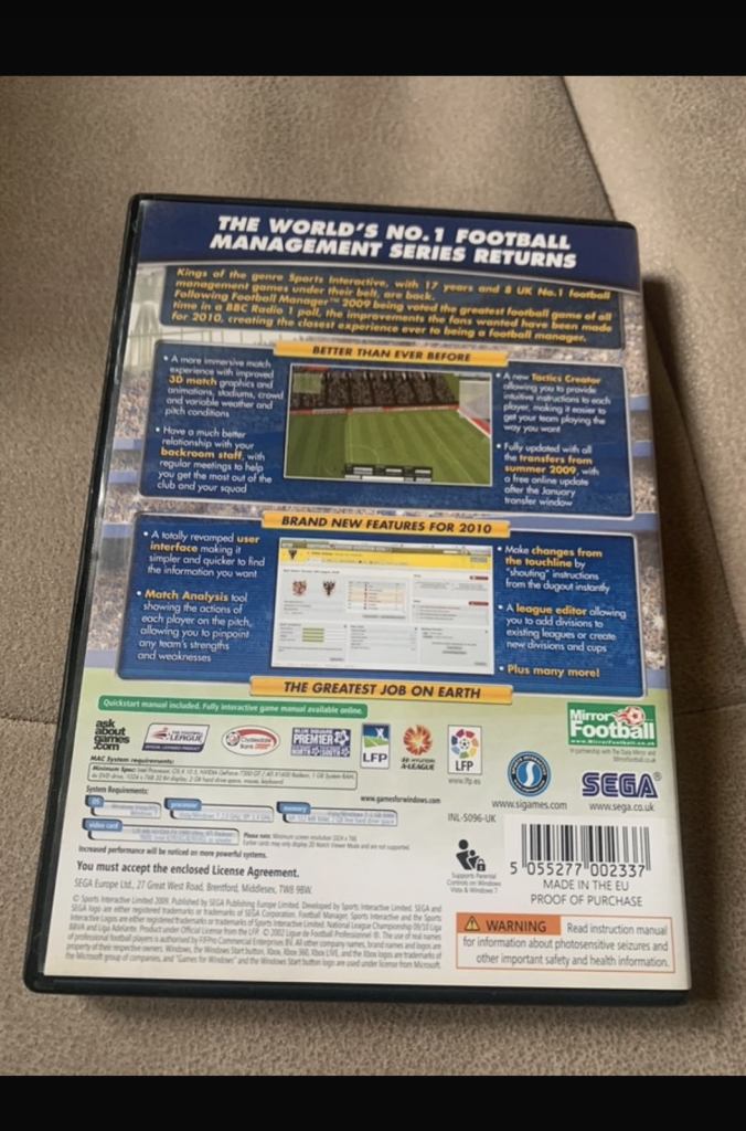 Football manager games (2010 and 2011) can be played on PC. Has been played numerous times but still in working condition.
