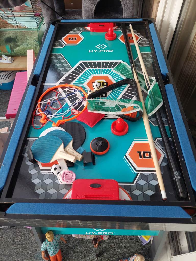 3 in 1 games table. Pool, air hockey and football. 3.5ft x 2ft. Table does fold. Hardly used, like new.