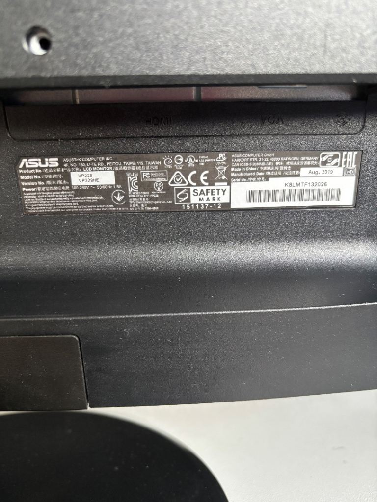 Excellent condition black ASUS gaming monitor 21.5 inch tilt angle screen full HD low blue light eye care hdmi inputs come with plug cable