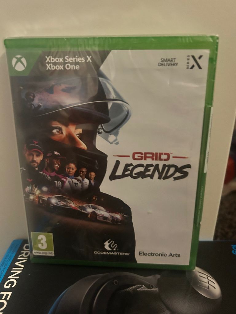 Also includes 3 racing games, The crew 2, Dirt rally 2.0, Grid legends (new, unopened).
