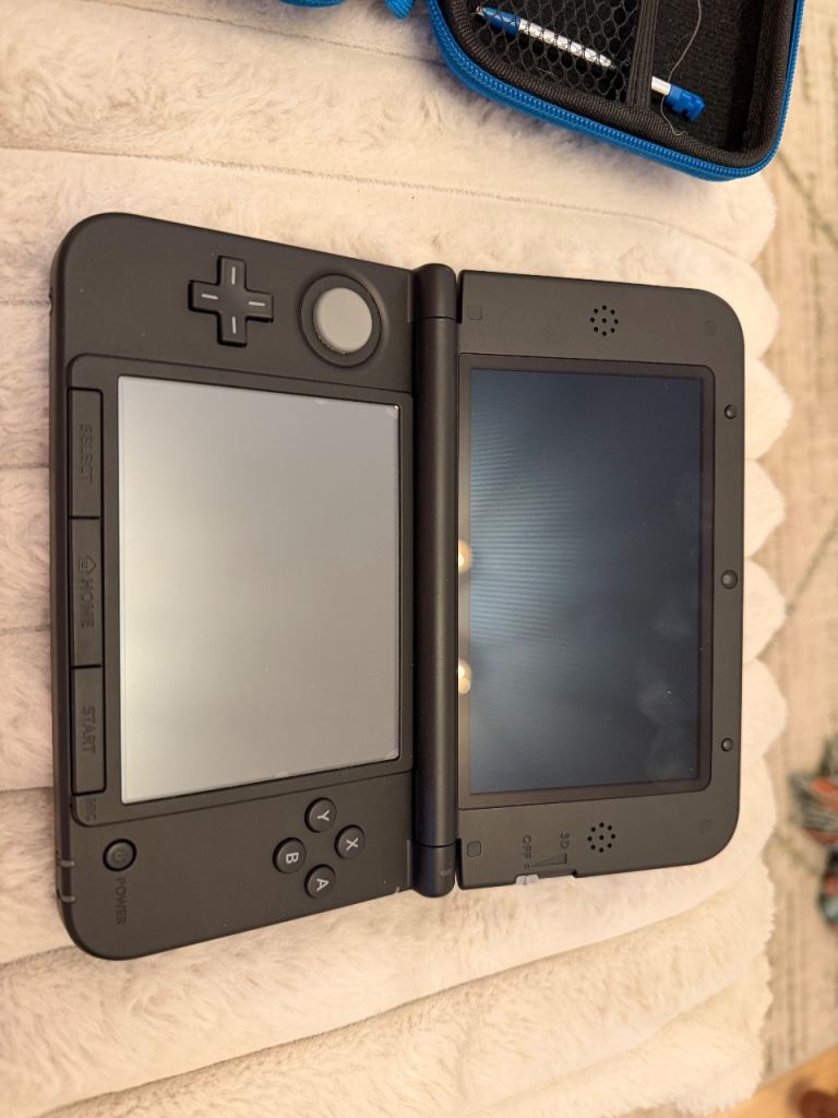 Nintendo 3Ds XL. Great condition, used but with no visible marks. 2 games included (style boutique and animal crossing) no original box or charger. Case is slightly broken but still usable.