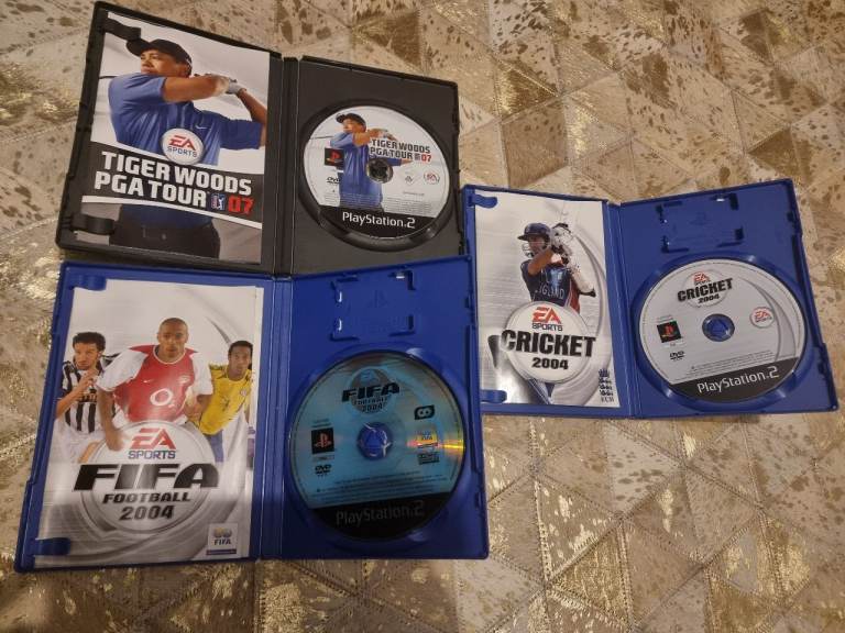 PS2 EA Sports Bundle X3 FIFA 2004 Tiger Woods PGA Tour 07 Cricket 2004 Complete