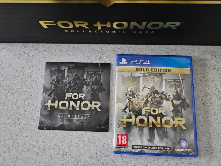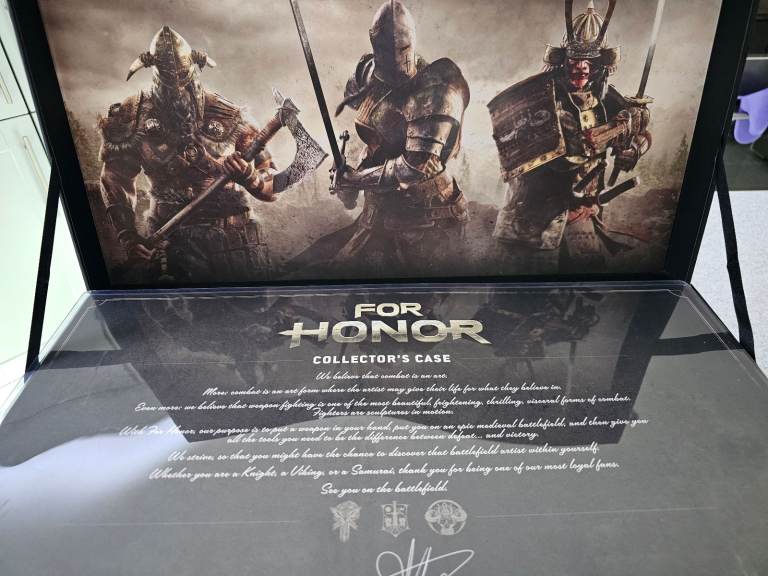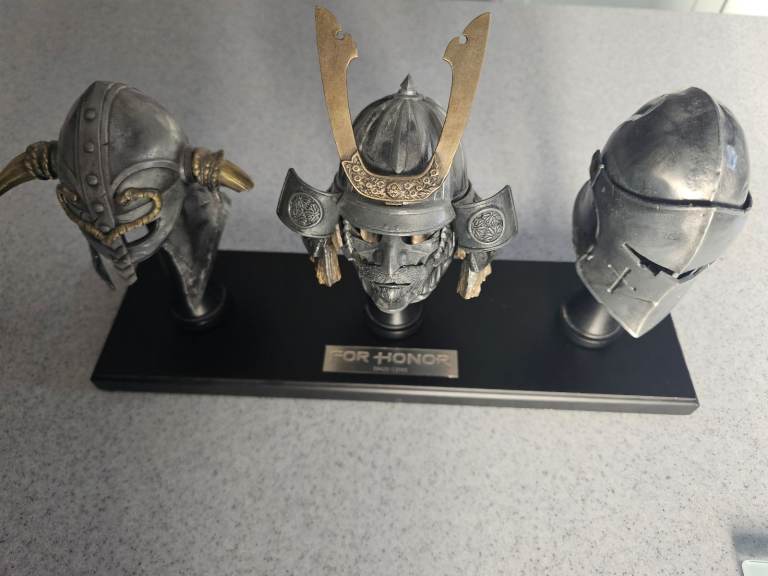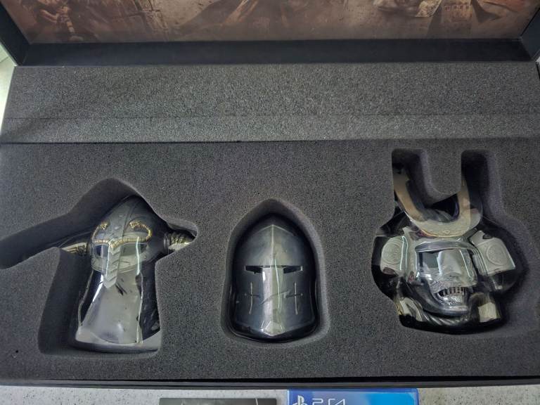 PS4 For Honor, The collector edition, all in very good condition, from a smoke and pet free home, the games code extra's no longer work as expired. Comes complete with game, soundtrack and metal castings helmets on a stand, the helmets are approx. 20cms high. The stand is 41cms x 12cms. My son is having a clear out and no longer wants this. Collection only.