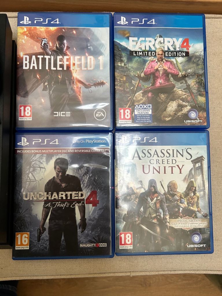 4 x games: Battlefield 1; Farcry 4; Uncharted 4 (a thief’s end); Assassin's Creed Unity.