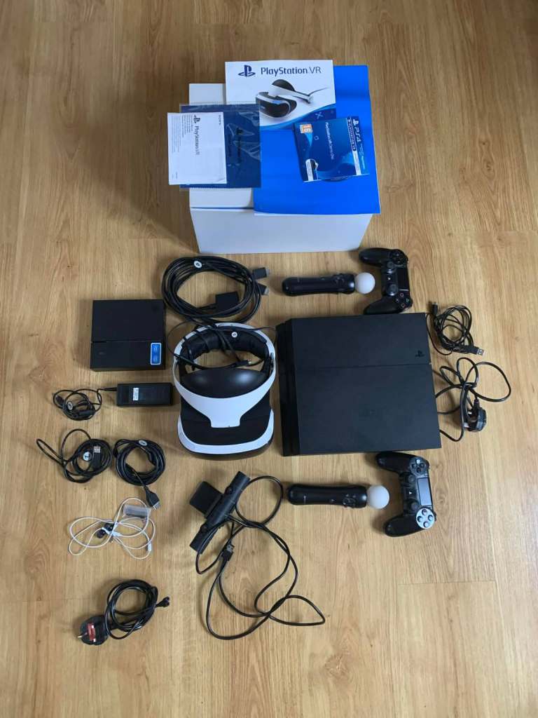 PS4 with VR Headset, Camera, 2 Dualshock Controllers, 2 Move Controllers and 21 Games