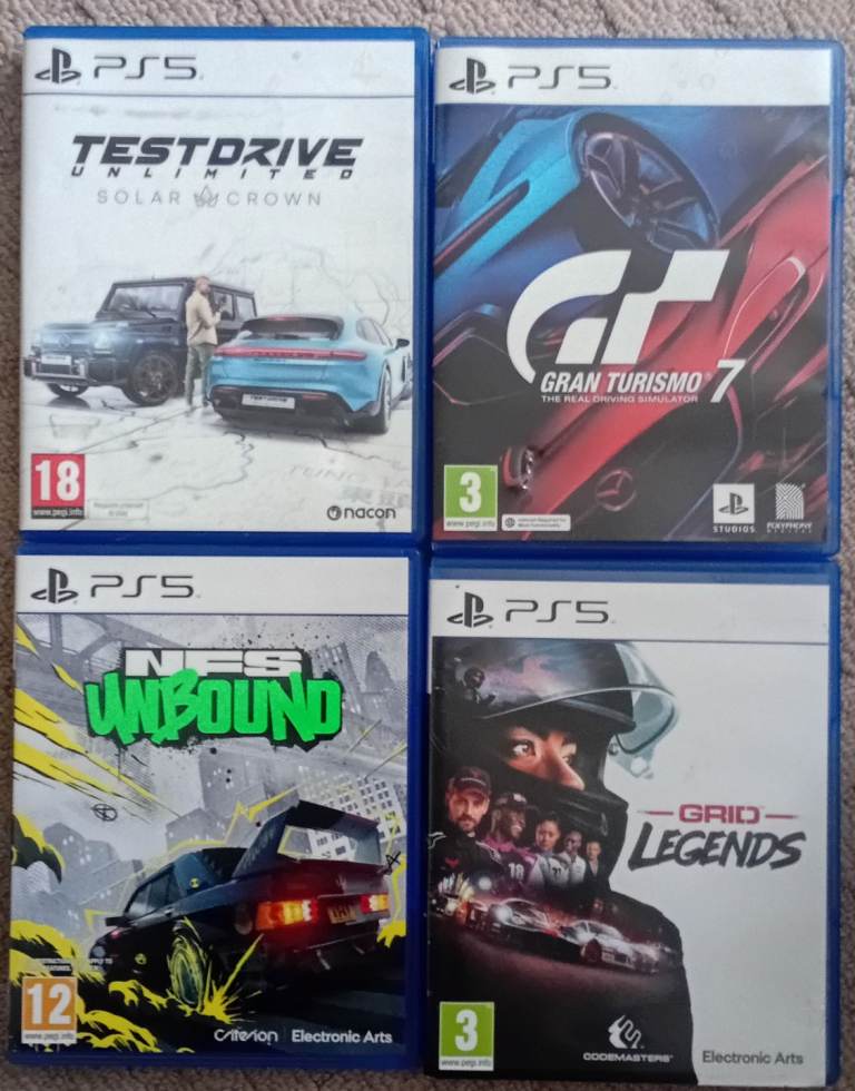 PS5 BUNDLE. Steering wheel with shifter, gamers chair 4 games and a tv