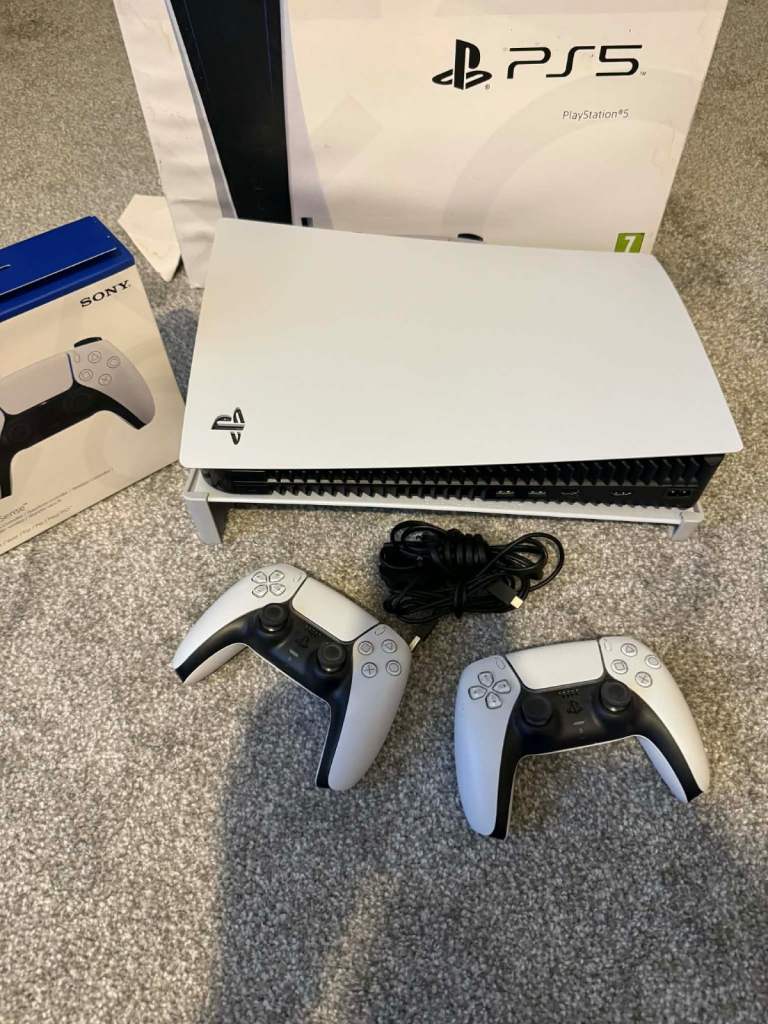 Selling PS5 Slim, Excellent condition, barely used, looks and runs like new. Comes with all original packaging and cables. Comes with an extra DualSense Wireless Controller and the game FC24. (Bank transfer only). Any questions, please do ask. Thanks for looking.