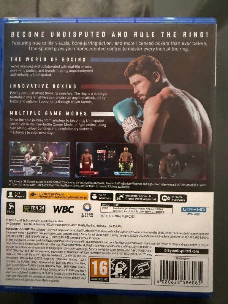 PS5 Undisputed Boxing Game – Excellent Condition, Played Once