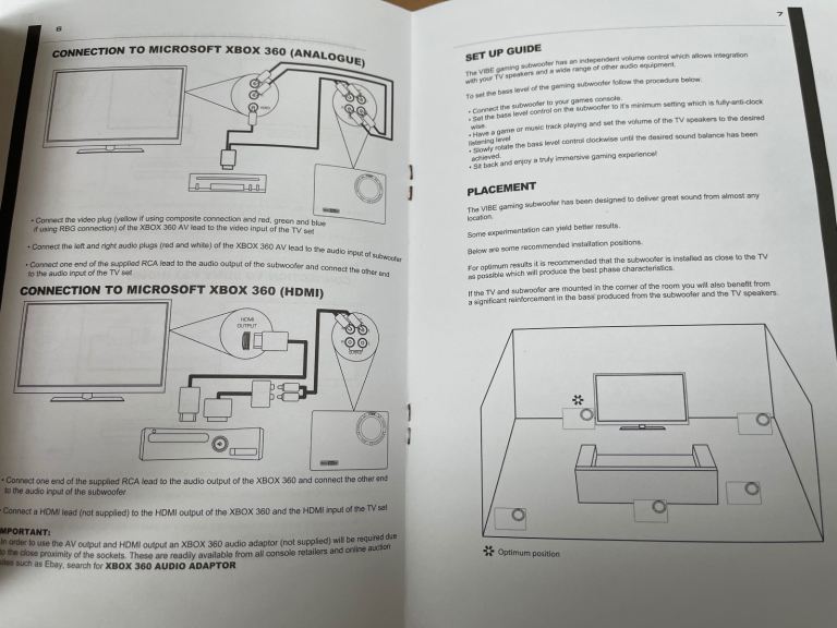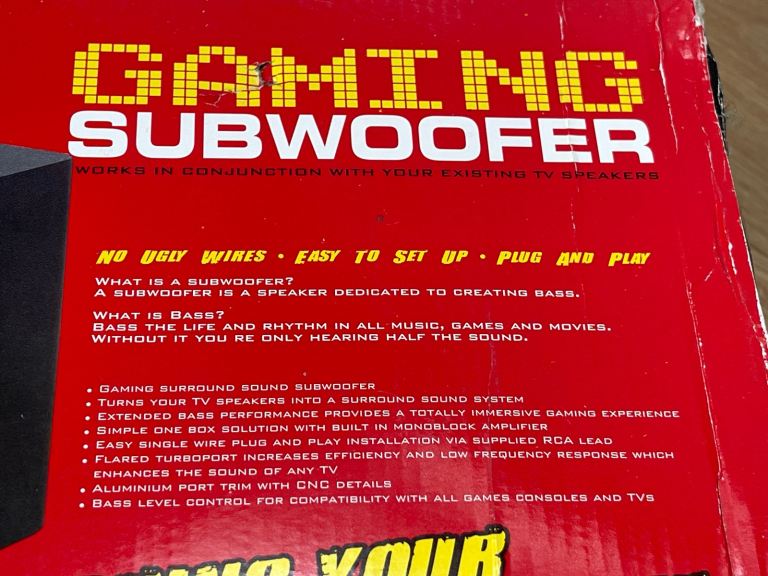 Hardly used gaming subwoofer. Works great and adds deep bass sounds to your tv when gaming. Works with just phono / RCA plugs from the console and then back to your tv 3.5mm - see instruction manual photos. Selling as I no longer use it. Pick-up from Combe Down, Bath