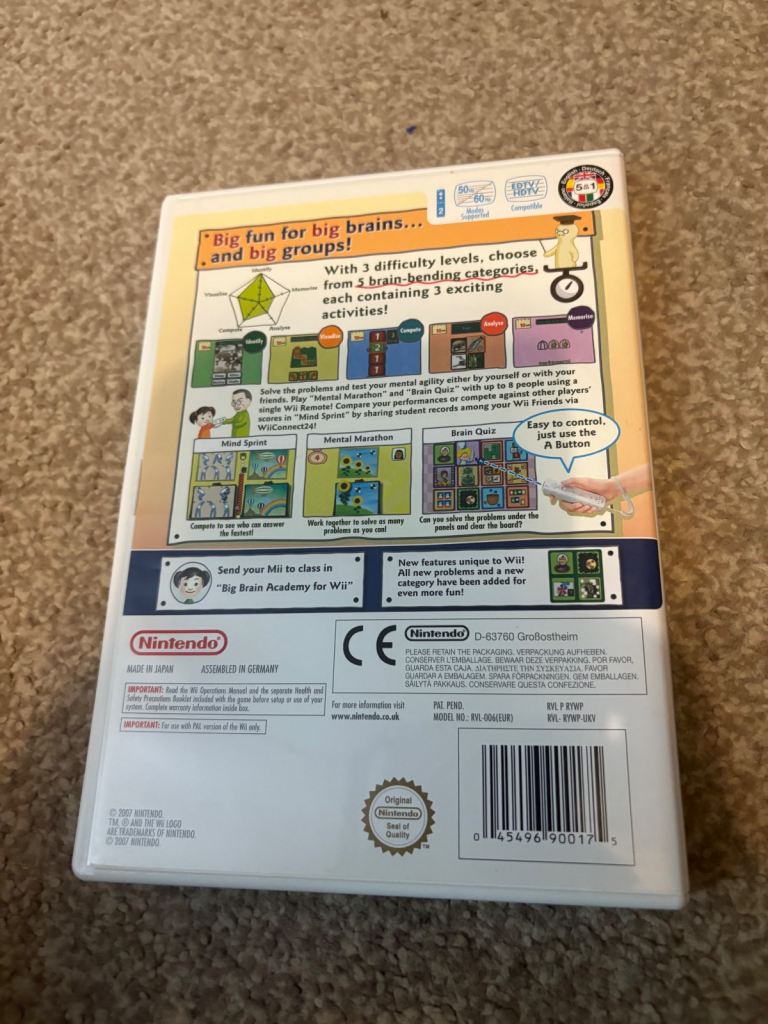Posting for 12+ yearsWii game big brain academy