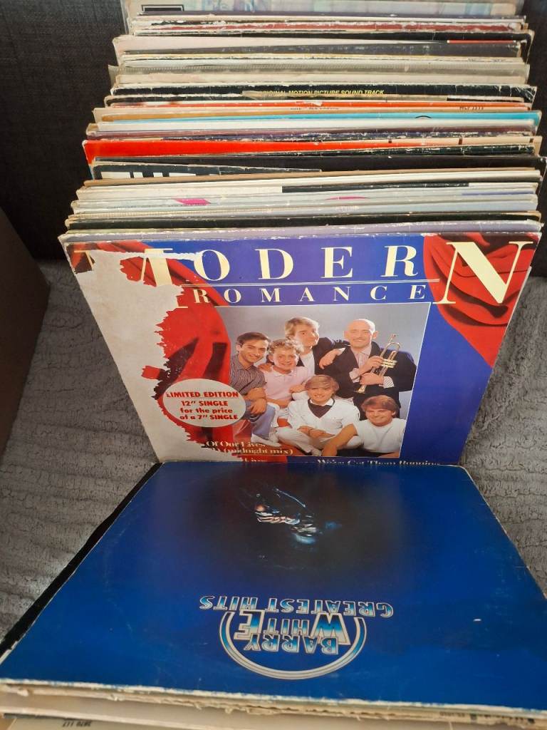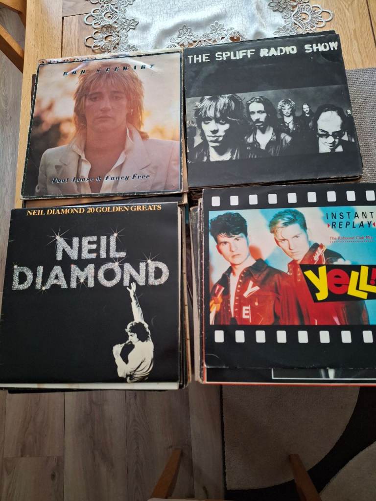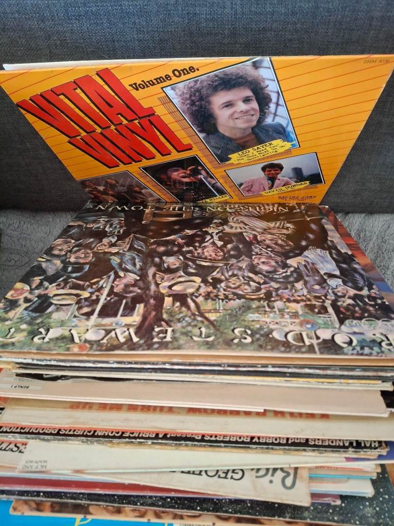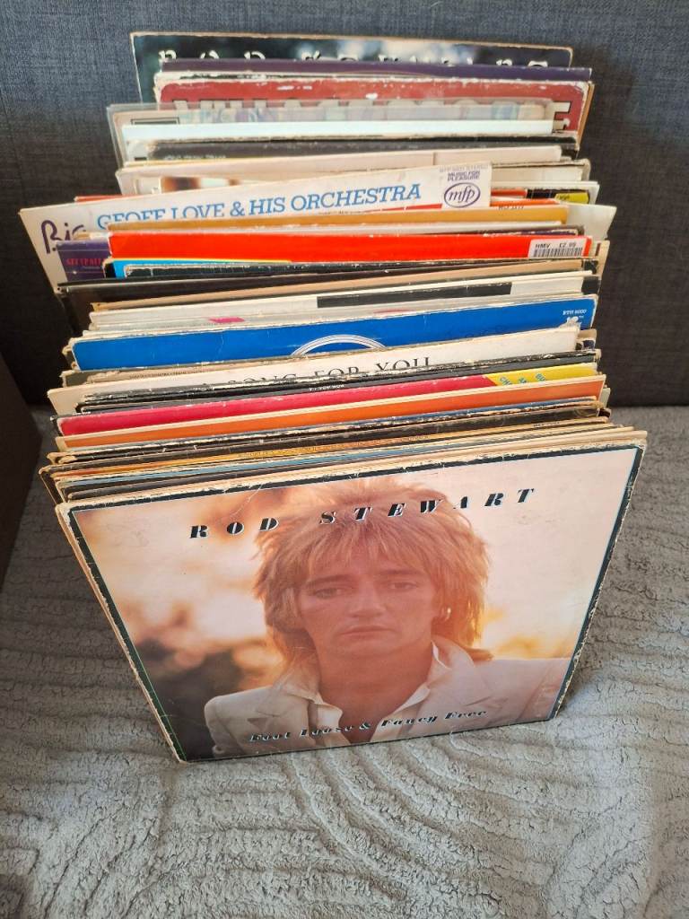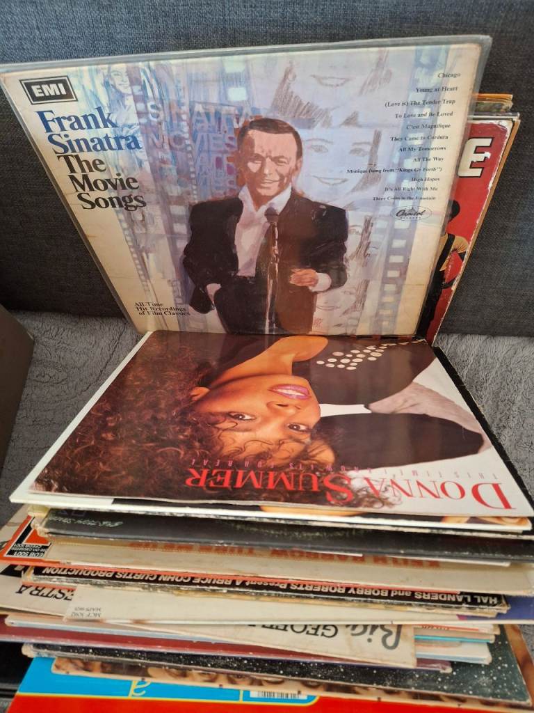 Mixed vinyl records including Sinatra, Rod Stewart, Neil Diamond, Sayer, Carpenters, Streisand, Abba, Elvis Presley and more.