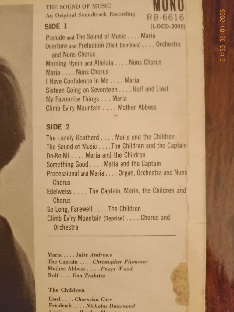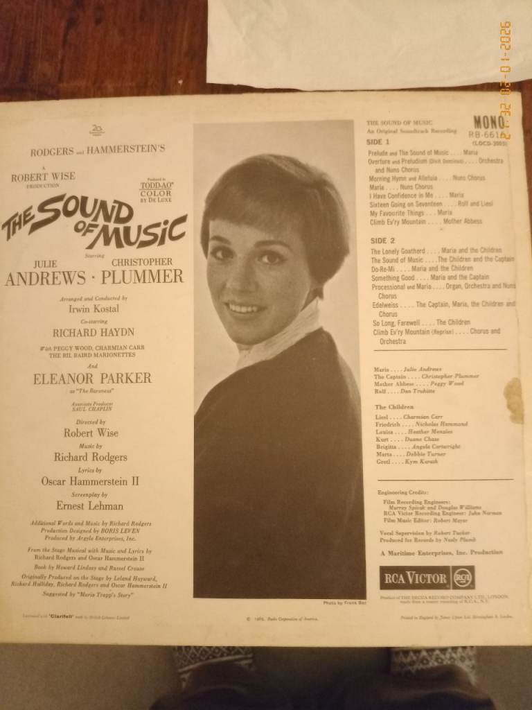Original 1965 recording of The Sound of Music album. All details can be seen on photos. Sleeve in good condition and record pristine as was not played much. Comes with storybook insert.