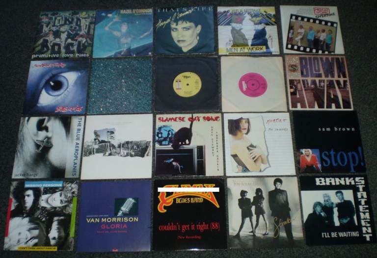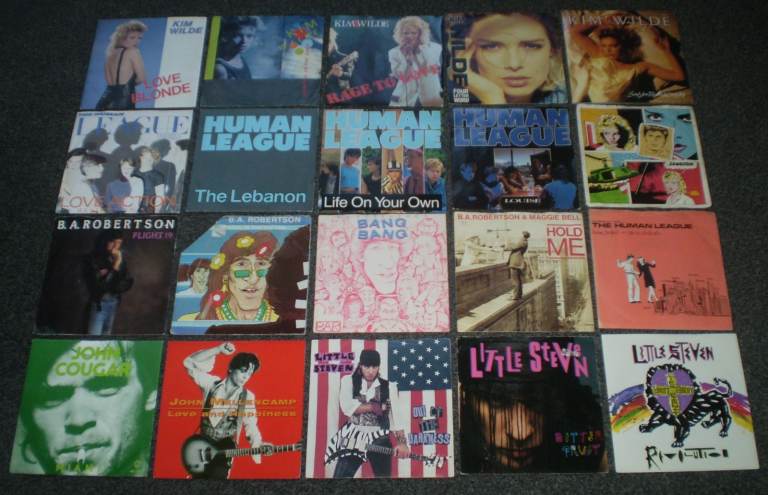 6O x EIGHTIES 7" SINGLES - HUMAN LEAGUE - KIM WILDE - MEN AT WORK - MEN WITHOUT HATS etc