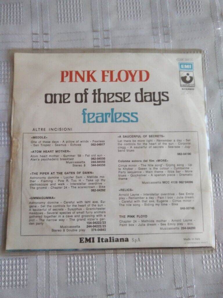 A 7 inch vinyl single pink floyd one of these days fearless EMI ITALIANA Made in Italy 1972 stereo - 3C006 05013 A side one of these days 1-3-72 B side fearless 1-3-72 05013B
