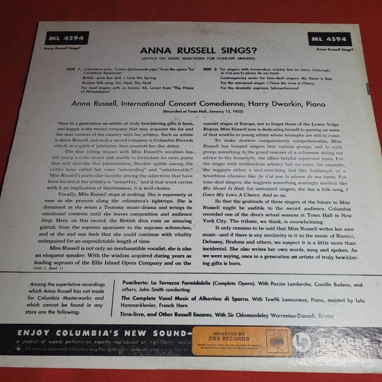 Anna Russell Sings? LP Vinyl Album Record Classical Stage & Screen Excellent Condition r2/4