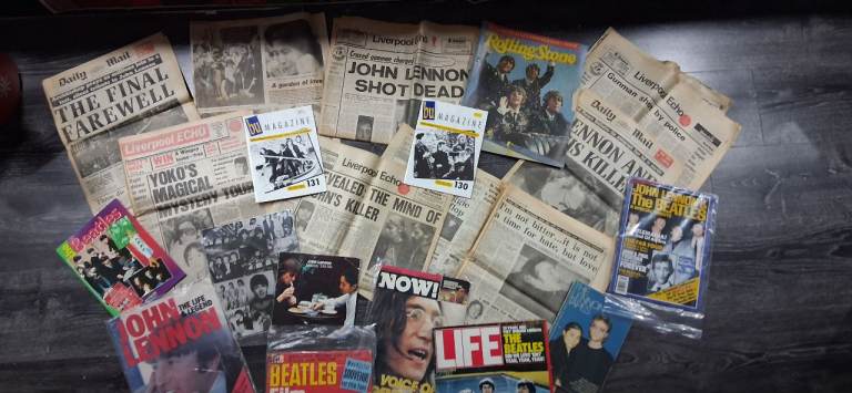 Beatles collectibles including John lennon newspaper report on the day he died. Magazines from their era from Life and Now magazines. American newspapers included a single vinyl. For Beatles fan or collector of memorabilia. Offers please. No time wasters.