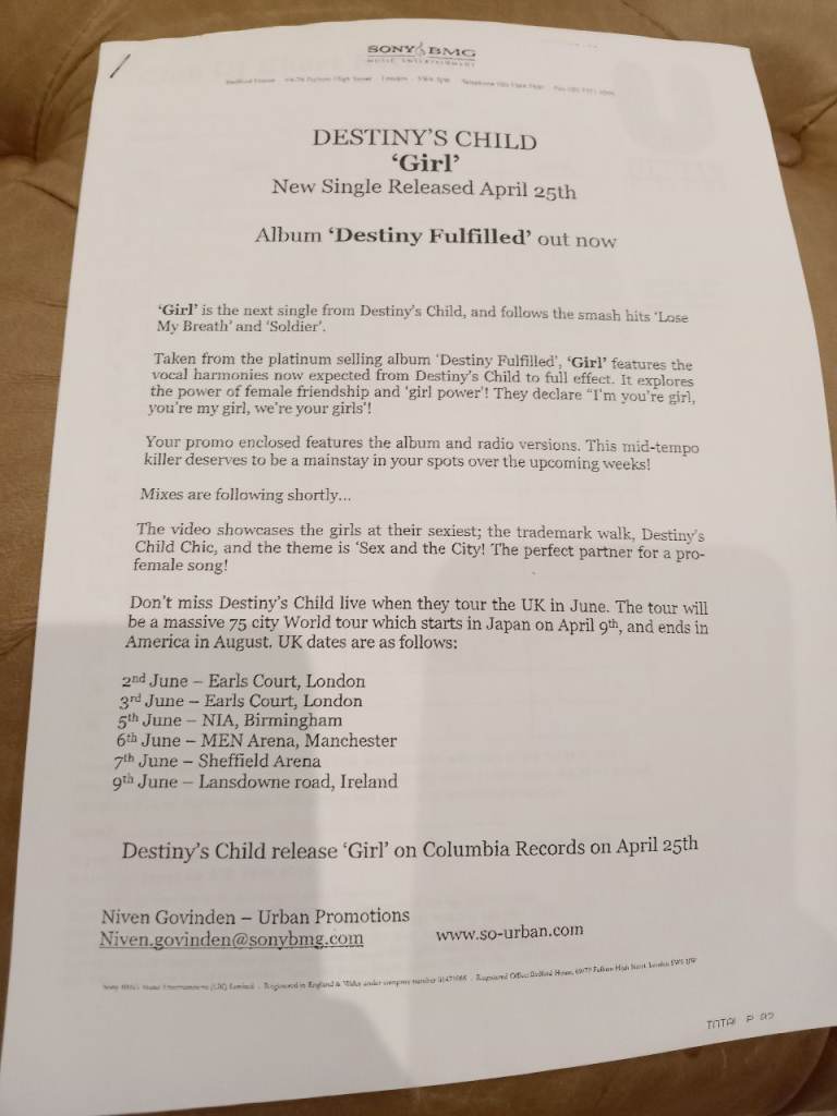 Now a collectors item for any Destiny's Child fan or vinyl collector.