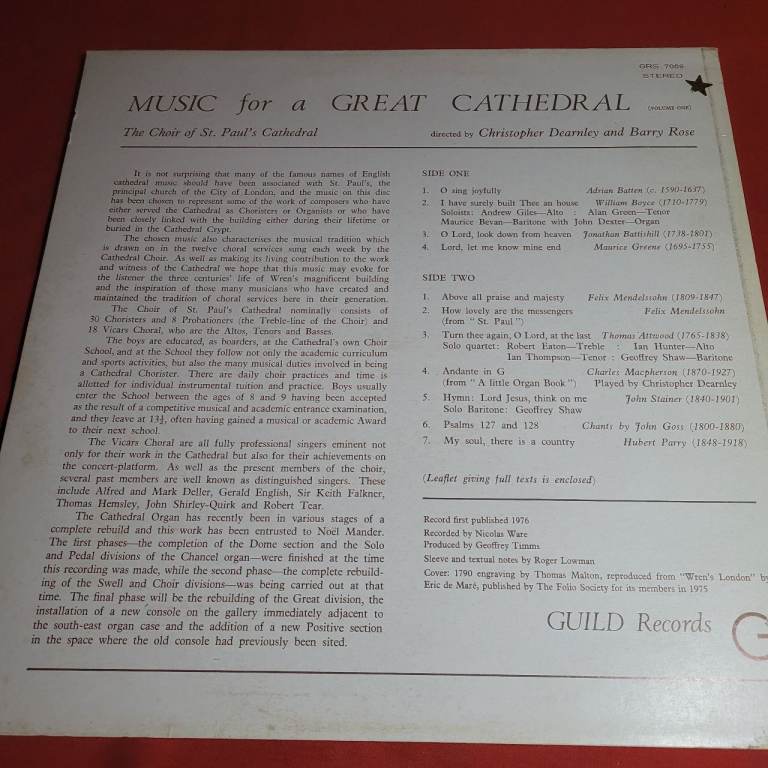 GRS 7008 - MUSIC FOR A GREAT CATHEDRAL - St Paul's DEARNLEY ROSE - Ex LP Record r2/4