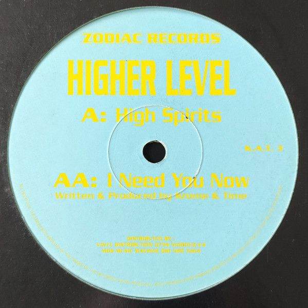 Higher Level - High Spirits / I Need You Now (12inch) - Zodiac 1994 - RARE Breakbeat, Jungle
