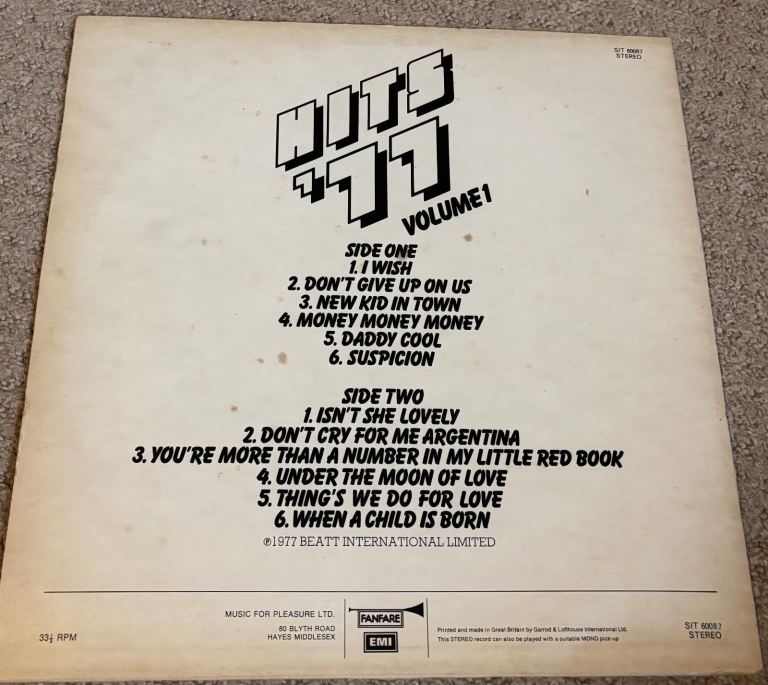Hits 77 vol 1 vinyl record