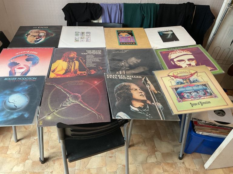 A bundle of 55 vinyl records, a mix of genres and artists.