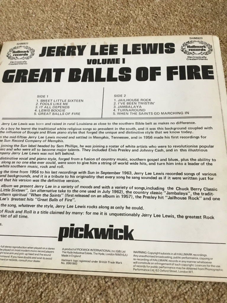 A JERRY LEE LEWIS LP GREAT “BALLS OF FIRE” IN EXCELLENT CONDITION