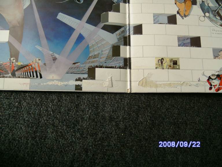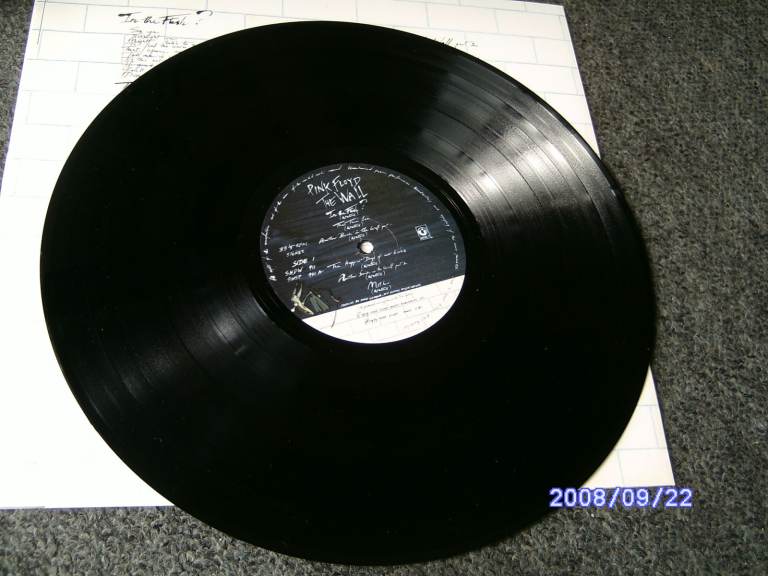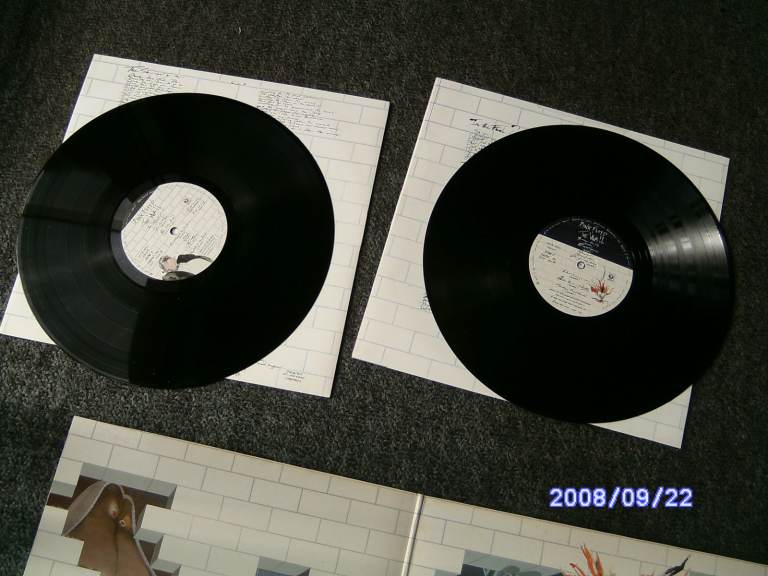 The wall by pink floyd,All 4 sides play near perfect with stunning,Has the transfer on front of cover. audio with no scratches,,The sleeve has a water stain and tearing to the inside.