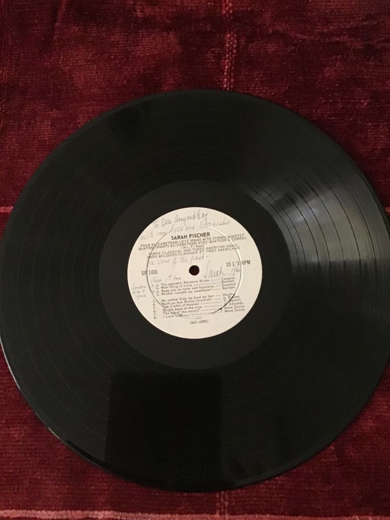 SARAH FISCHER CENTENNIAL 1967 LP SF1001, SIGNED BY THE ARTIST.