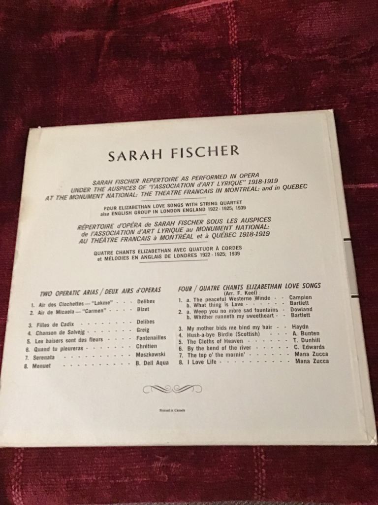 Sarah Fischer 1896 - 1975, French Canadian soprano, opera singer and teacher.