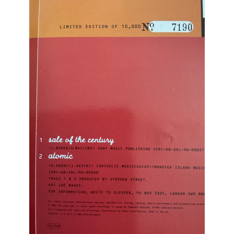 SLEEPER - SALE OF THE CENTURY 7” LTD EDITION GREEN VINYL BRITPOP