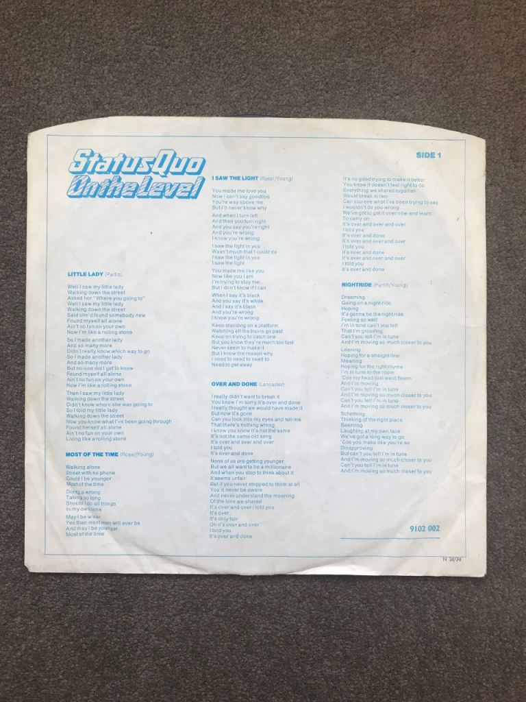 Status Quo Album ‘On the Level’, recorded in 1974.