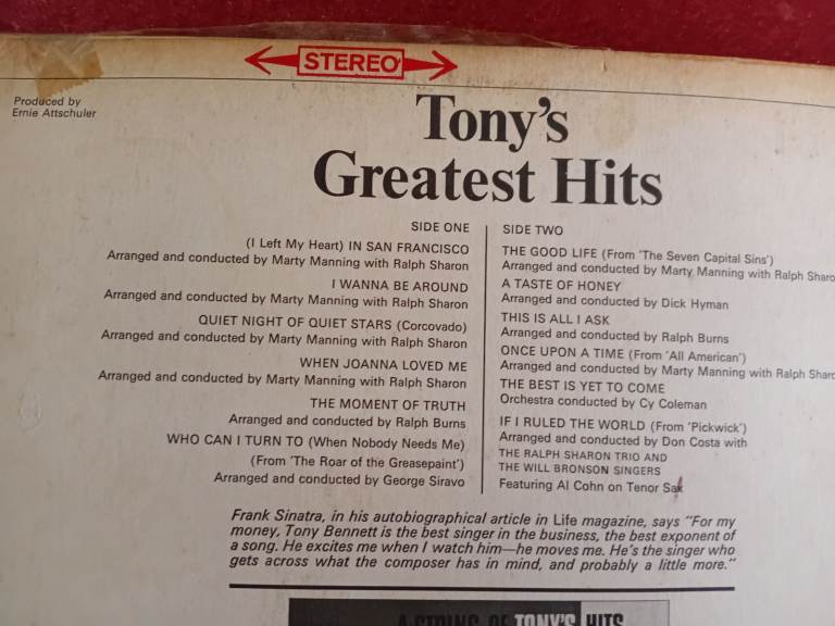 Tony Bennett Greatest Hits LP